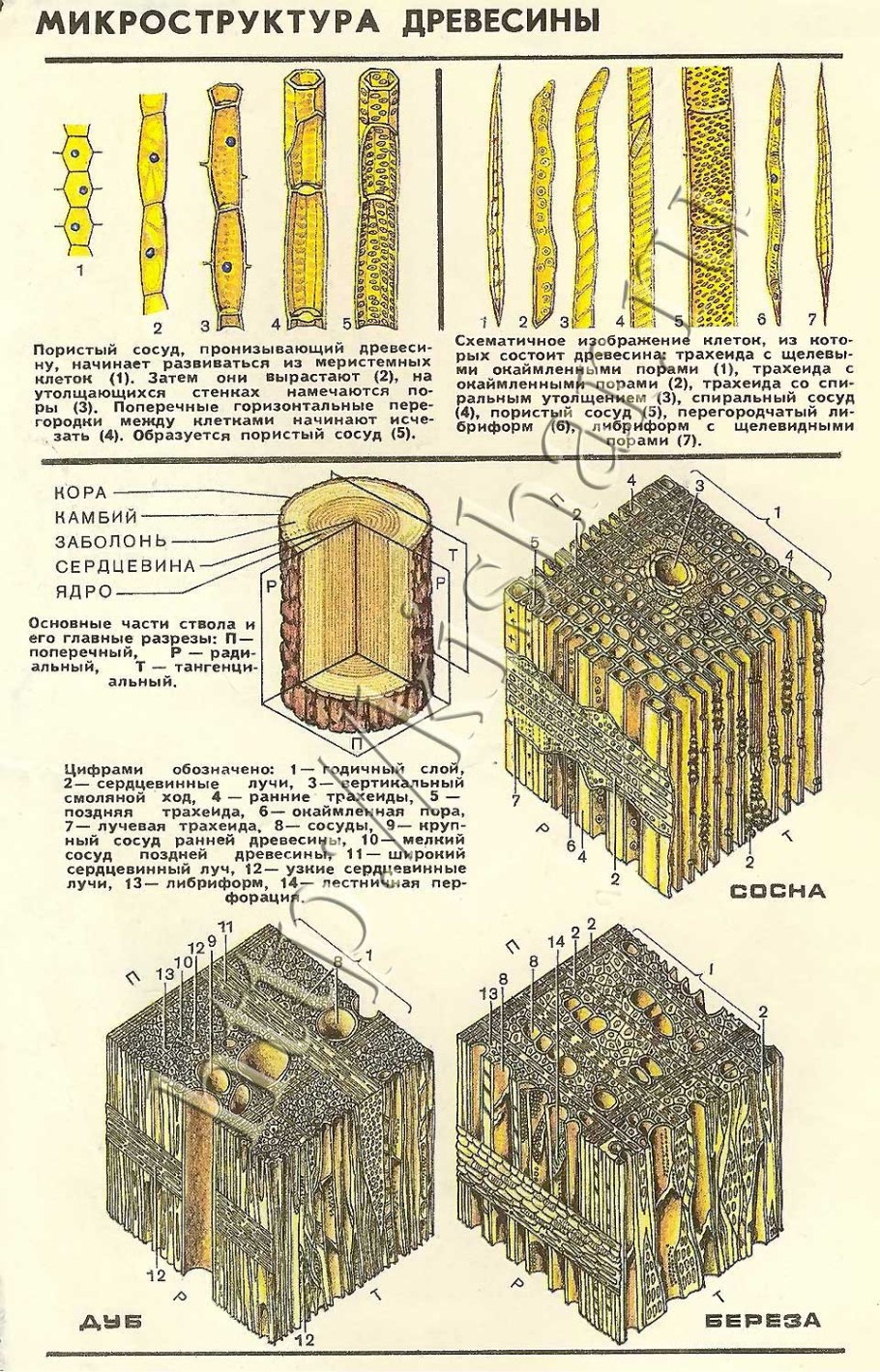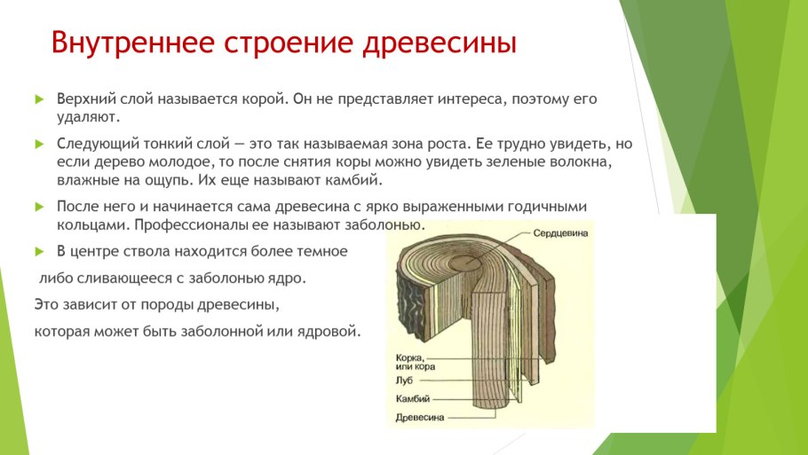 Строение среза древесины