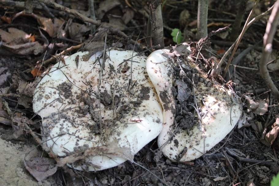 Грибы в тополиных посадках белого цвета