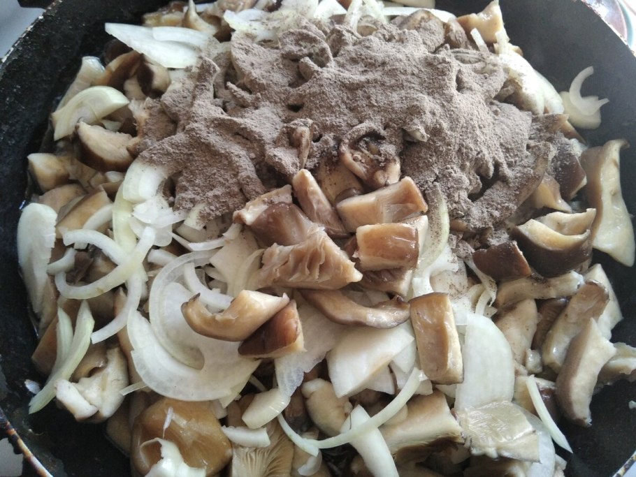 Сколько жарить вешенки на сковороде по времени с луком