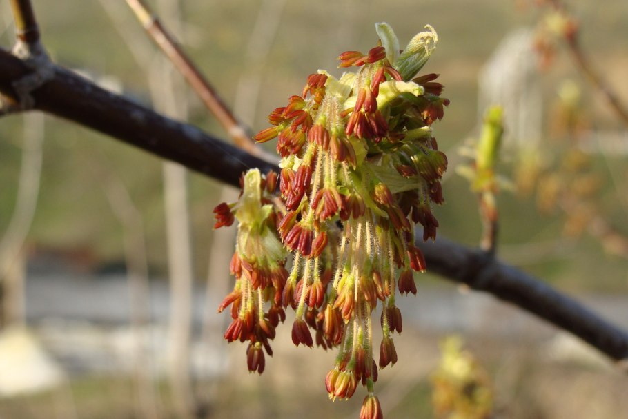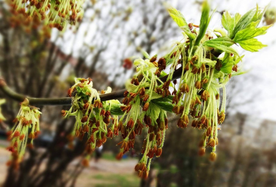 Клен цветение сережки