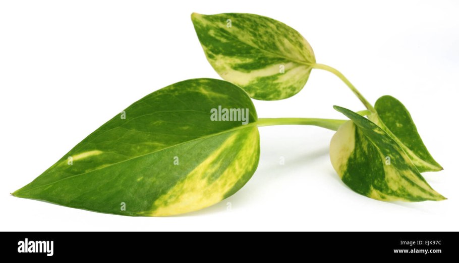 Листья эпипремнума крупно на белом фоне