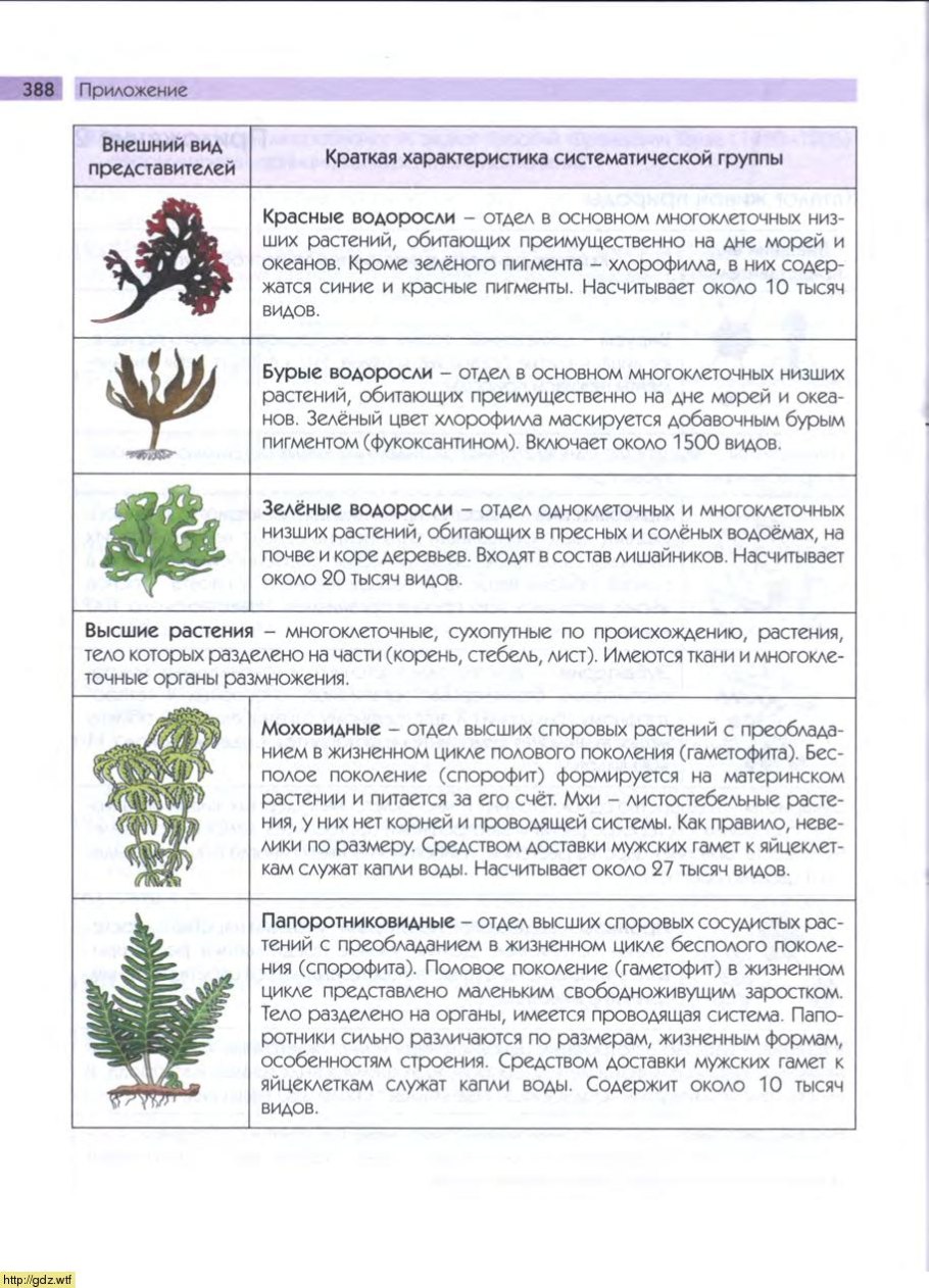 Таблица по биологии 5 класс водоросли красные зелёные бурые красные
