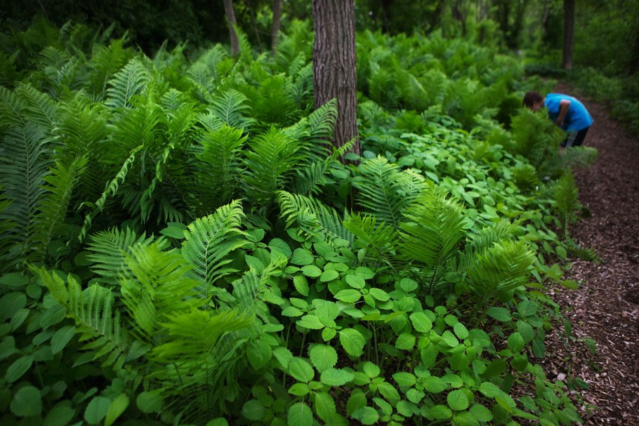 Папоротник страусник в ландшафте