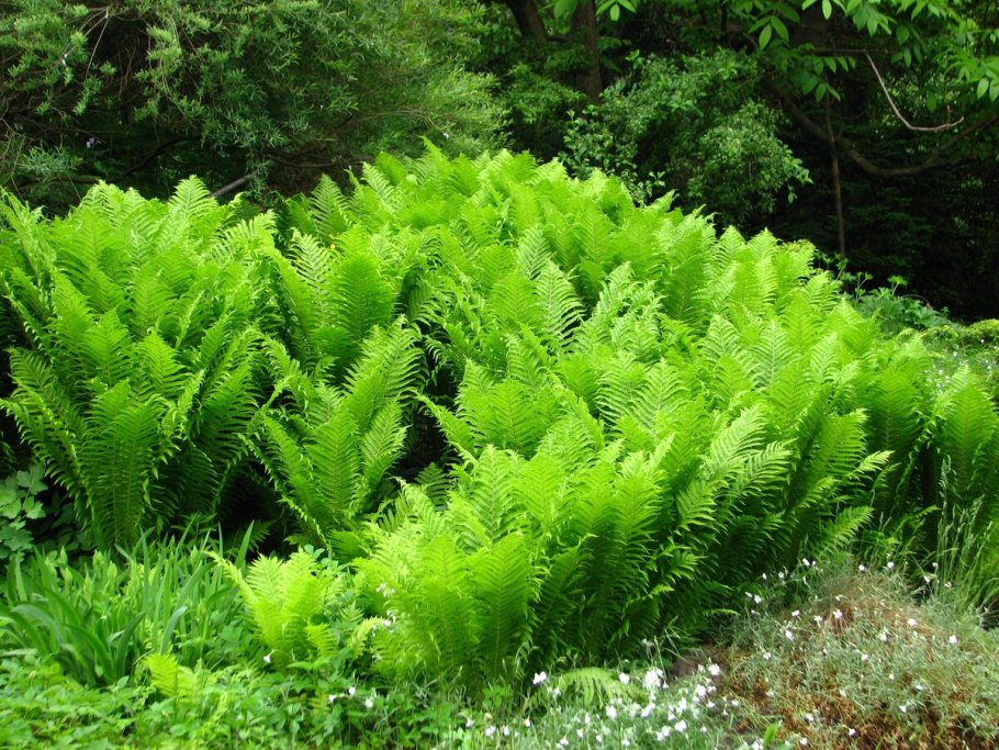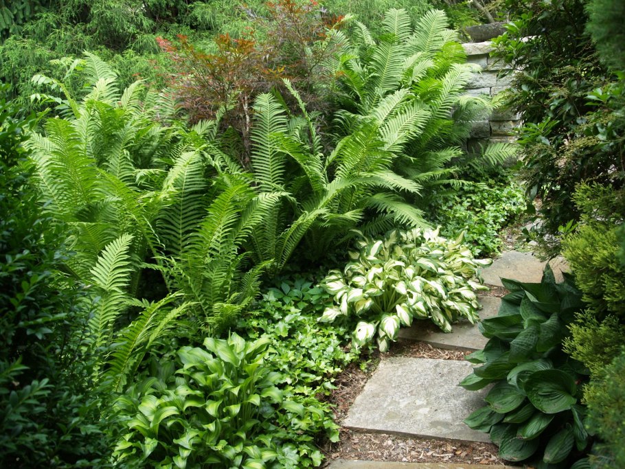 Папоротник страусник в саду