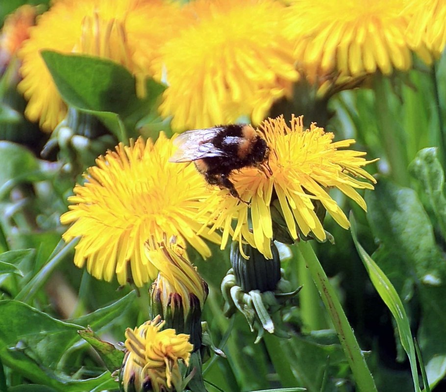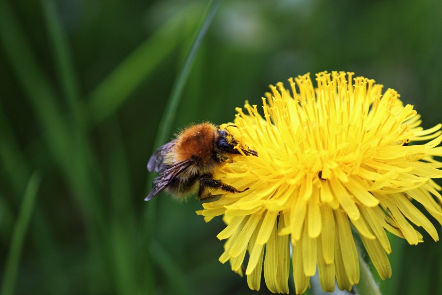 Одуванчик опыляет Шмель