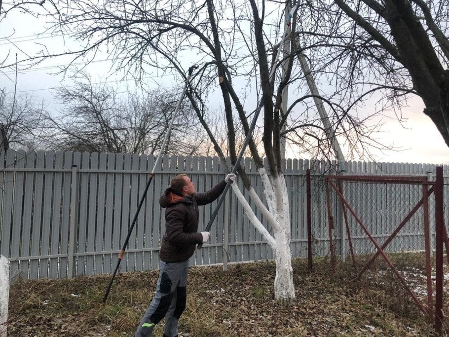Осенняя побелка плодовых деревьев