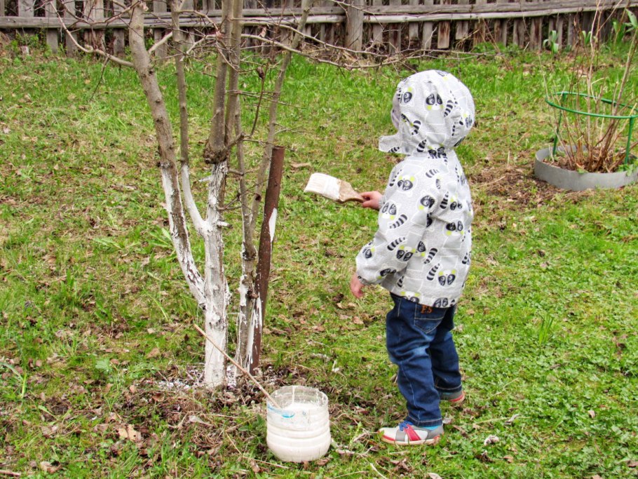 Побелка стволов плодовых деревьев