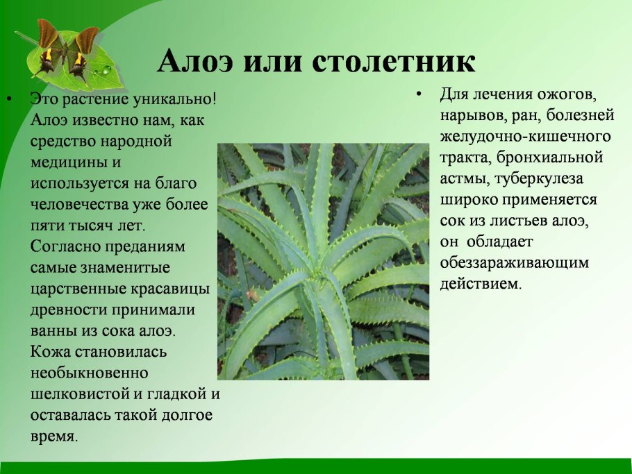 Паспорт лекарственного растения алоэ
