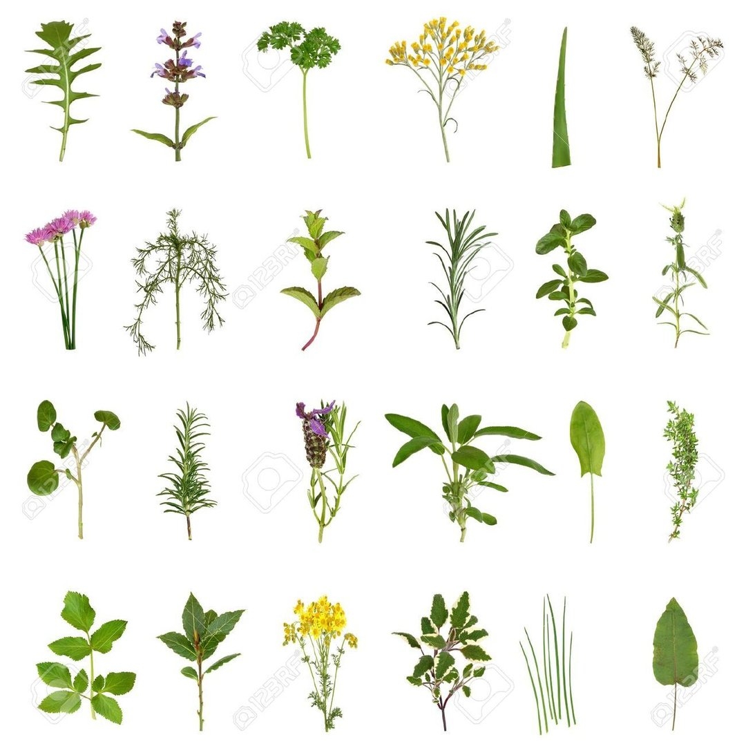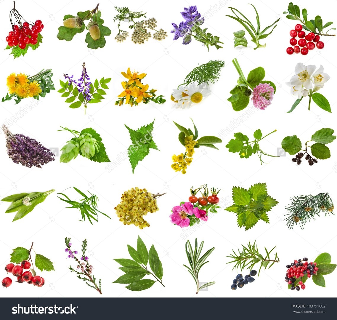 Целебные травы на белом фоне