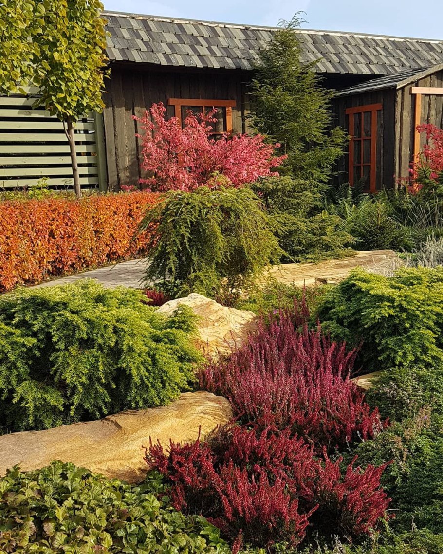 Миксбордер из хвойных и многолетников схемы