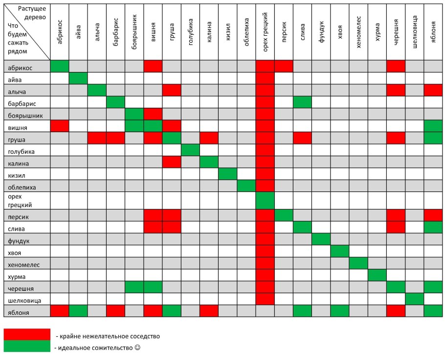 Какие плодовые деревья нельзя сажать рядом друг с другом таблица
