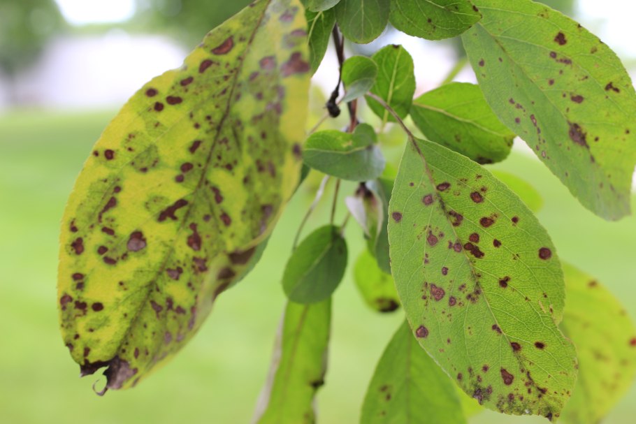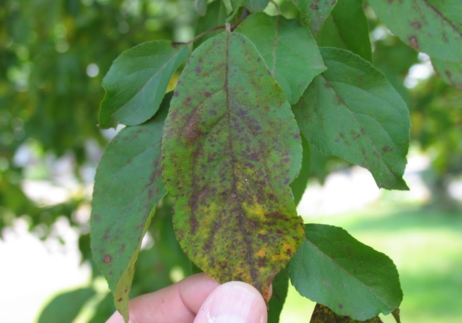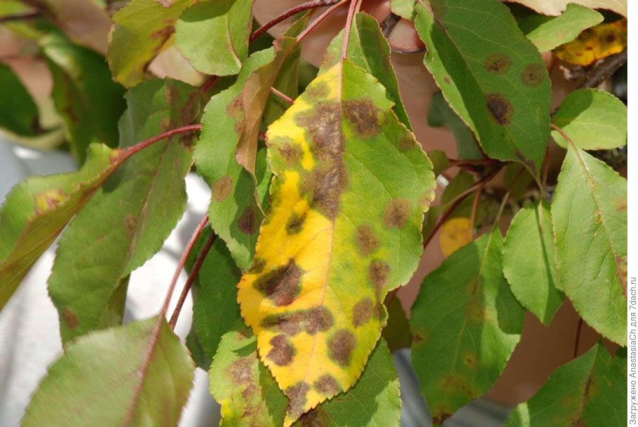 Бурая пятнистость яблони август