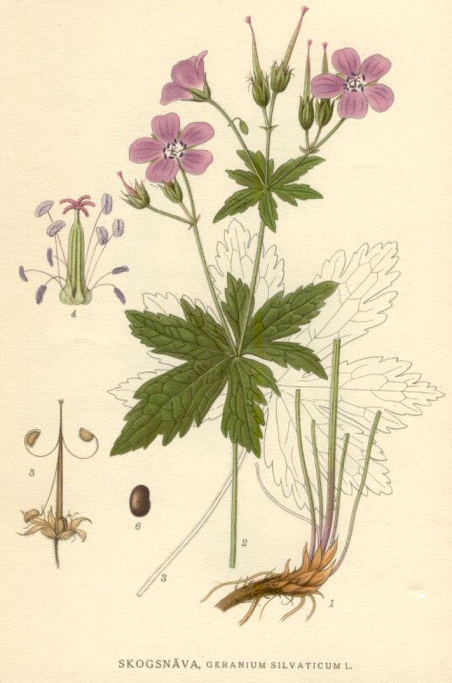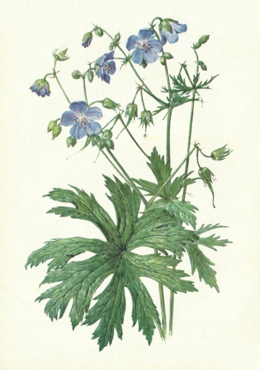 Герань Луговая Ботаническая иллюстрация
