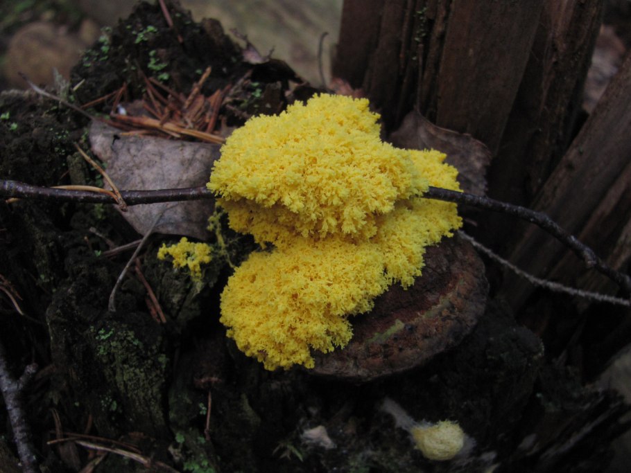 Трутовик серно-желтый на пне
