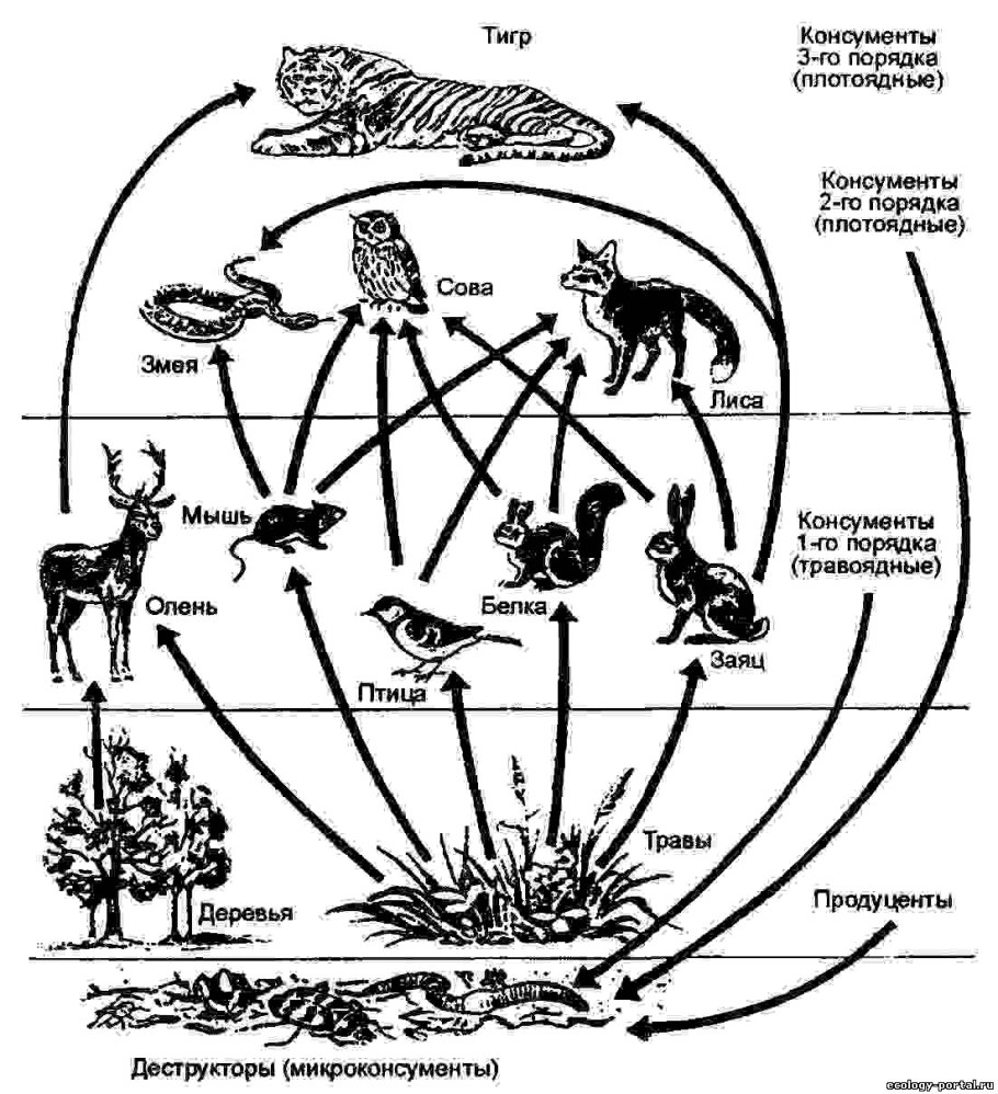 Пищевая сеть леса схема