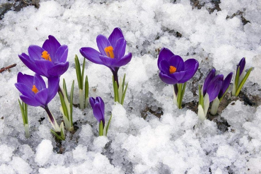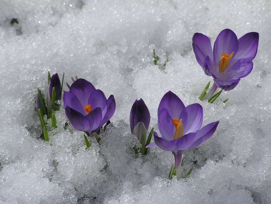 Весенние цветы под снегом
