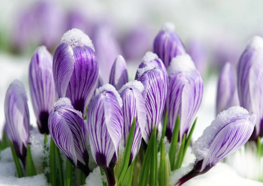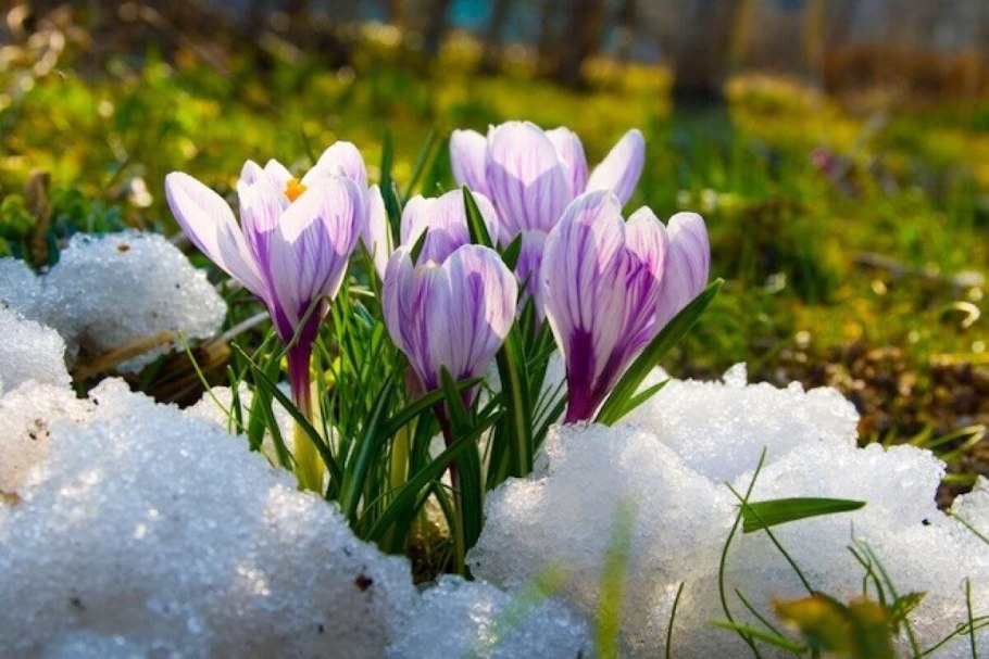 Цветы крокусы и подснежники
