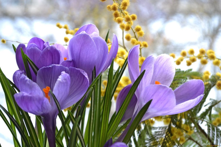 Крокусы подснежники и Мимоза