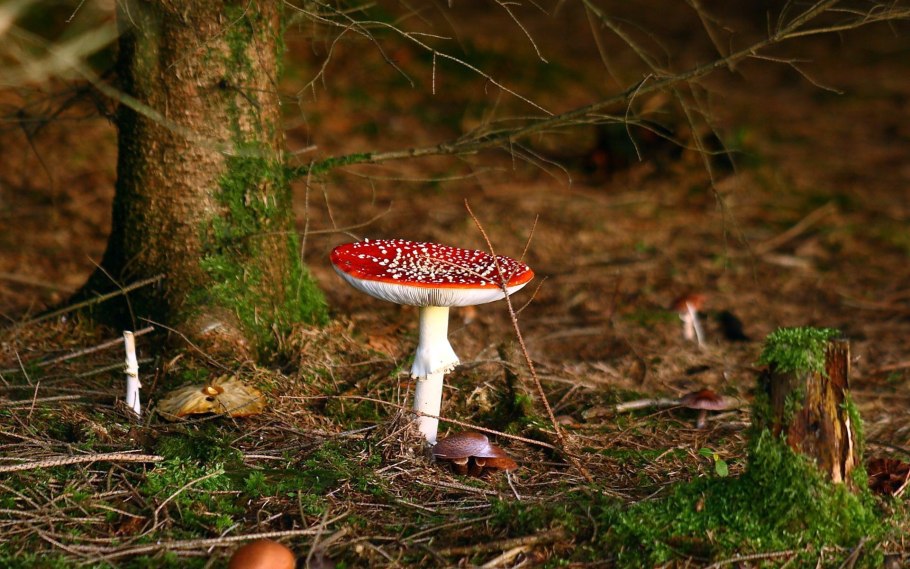 Красные грибы на дереве