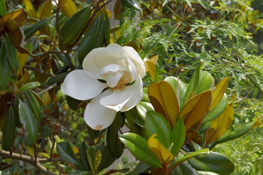 Магнолия дерево листья