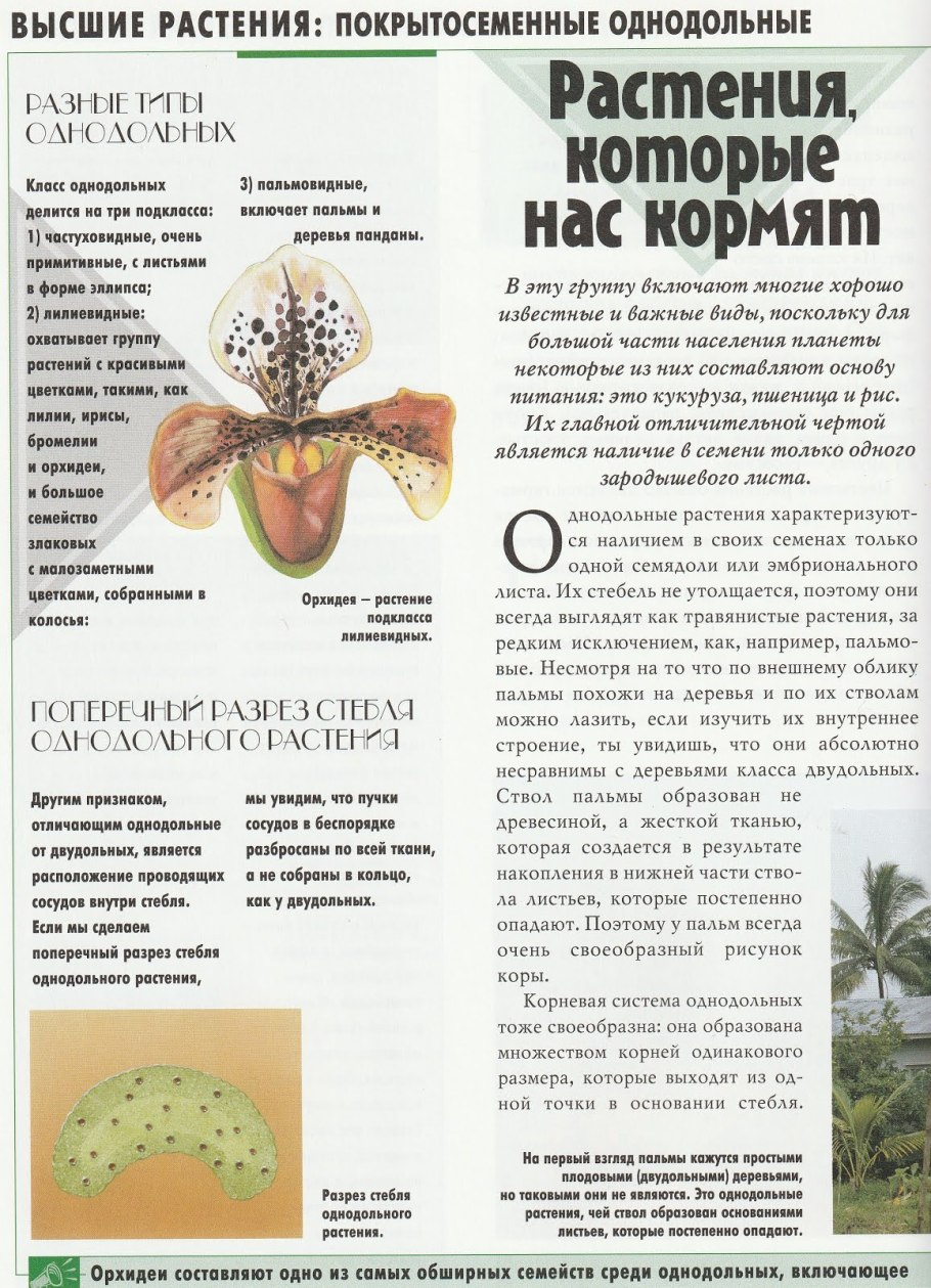 Семейства однодольных растений и двудольных растений