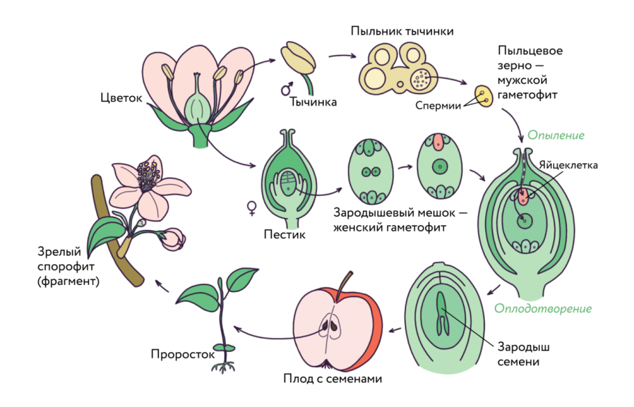 Цикл размножения покрытосеменных растений схема