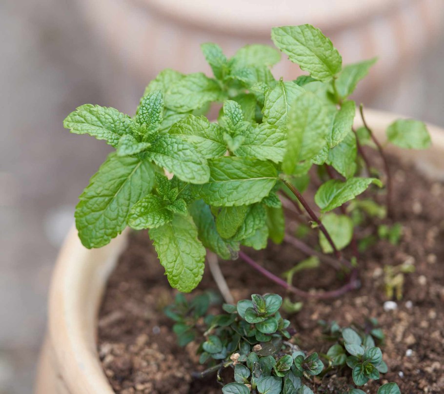 Мята в горшке в интерьере