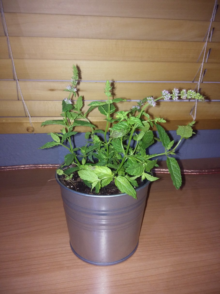 Мята перечная в горшке на подоконнике