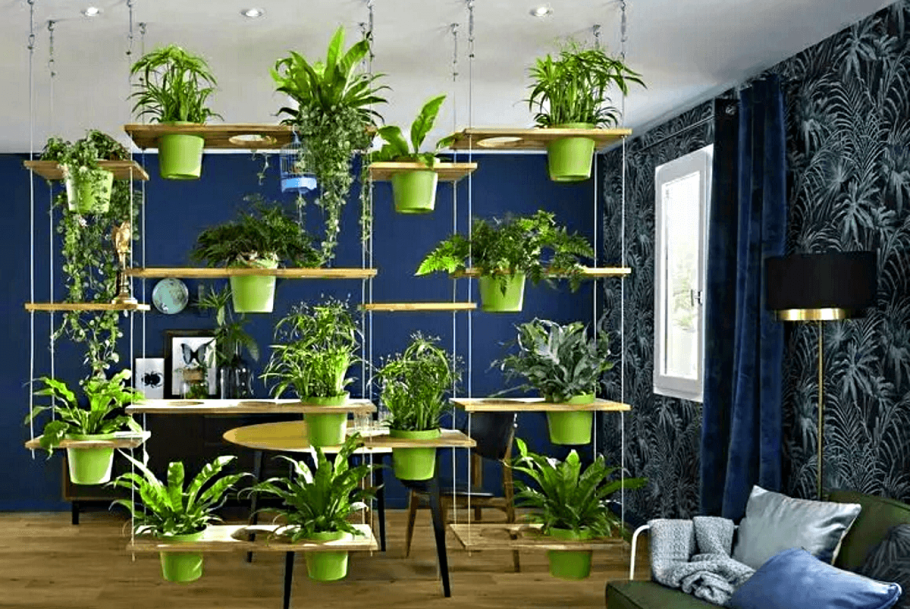 Много растений в интерьере