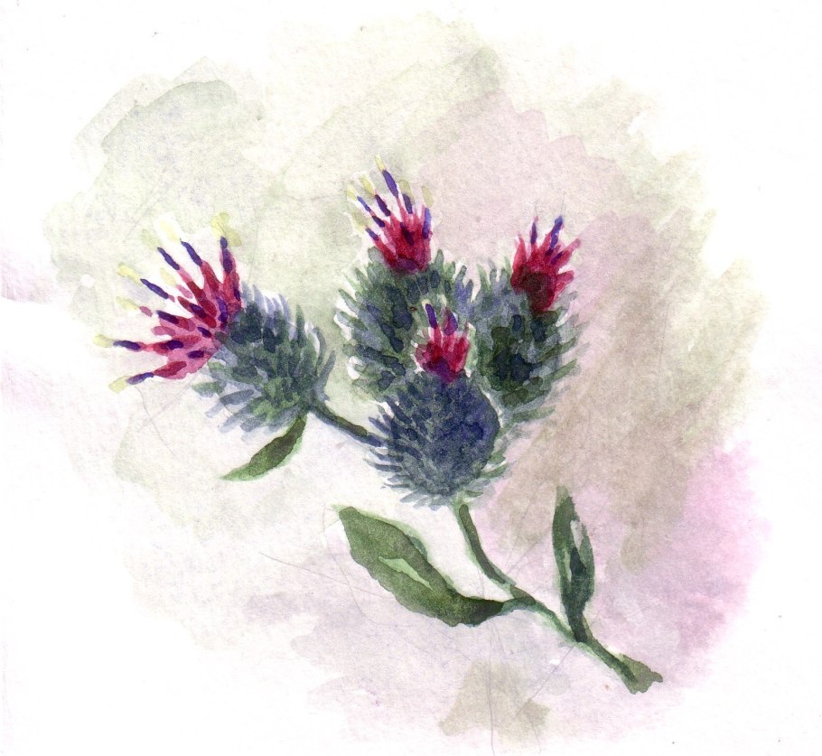 Репейник акварелью