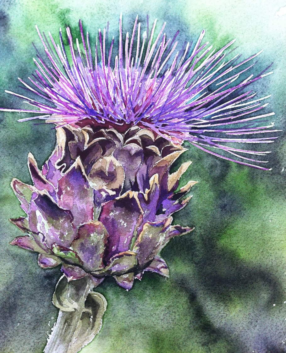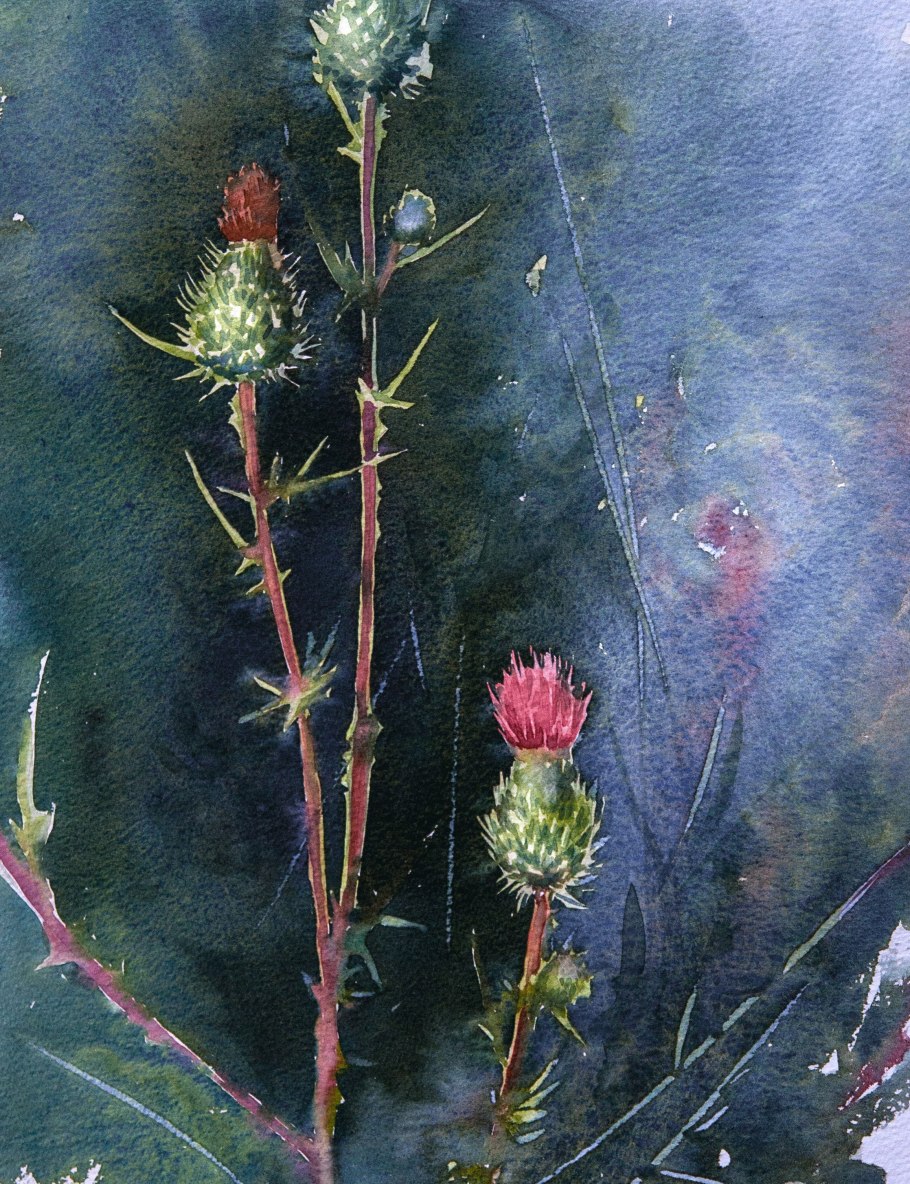 Чертополох акварель