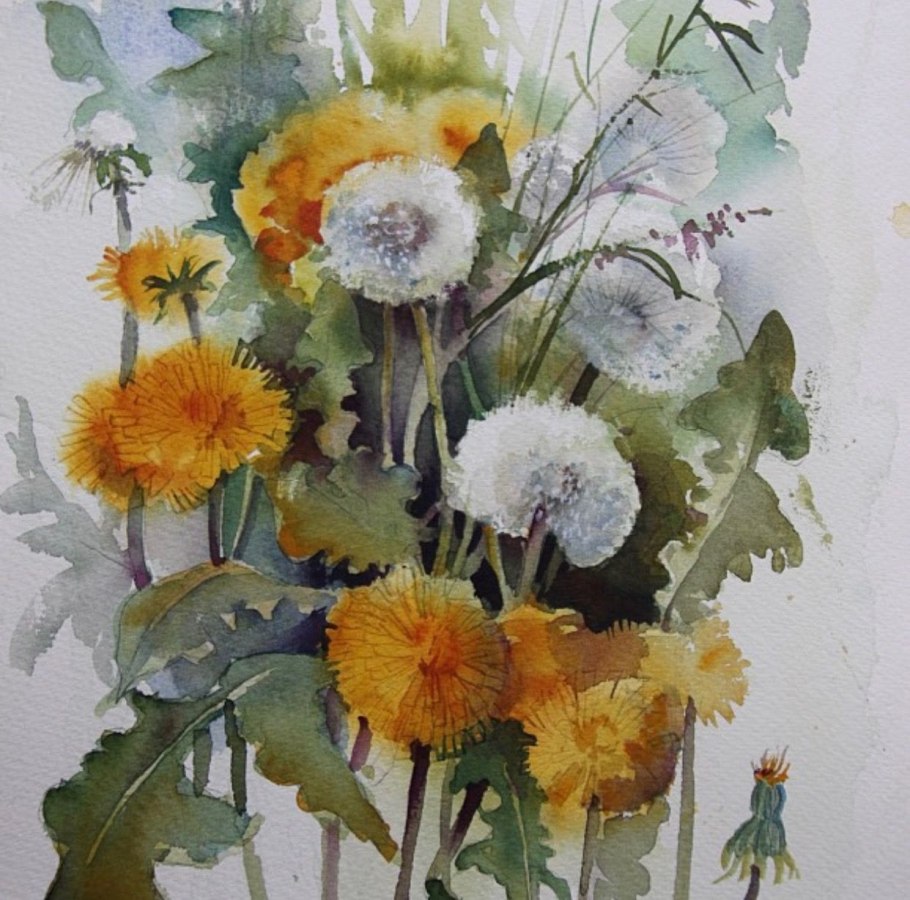 Одуванчик акварелью пленэр