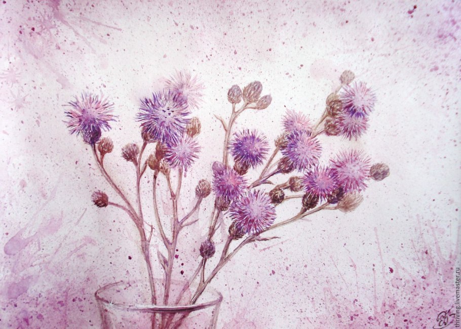 Букет чертополох акварель