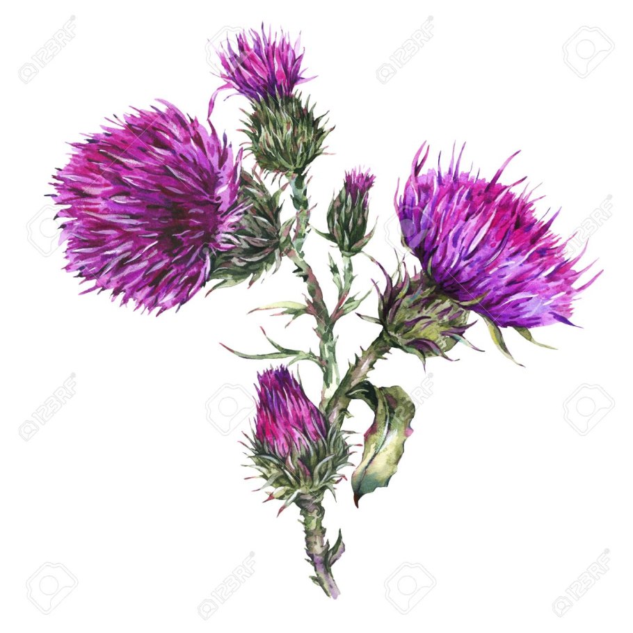 Расторопша чертополох акварелью