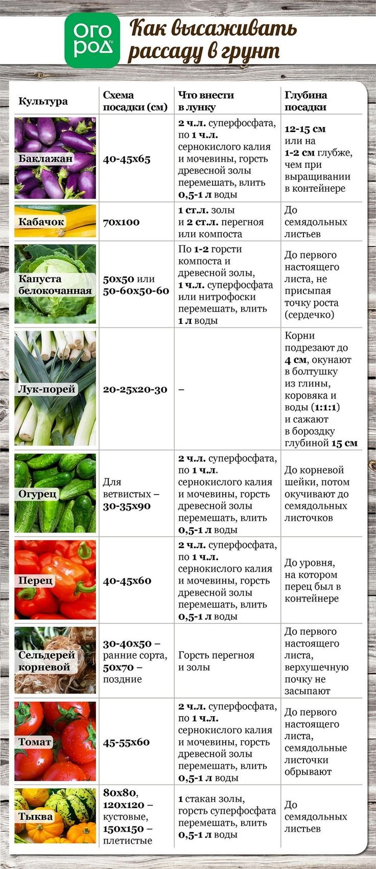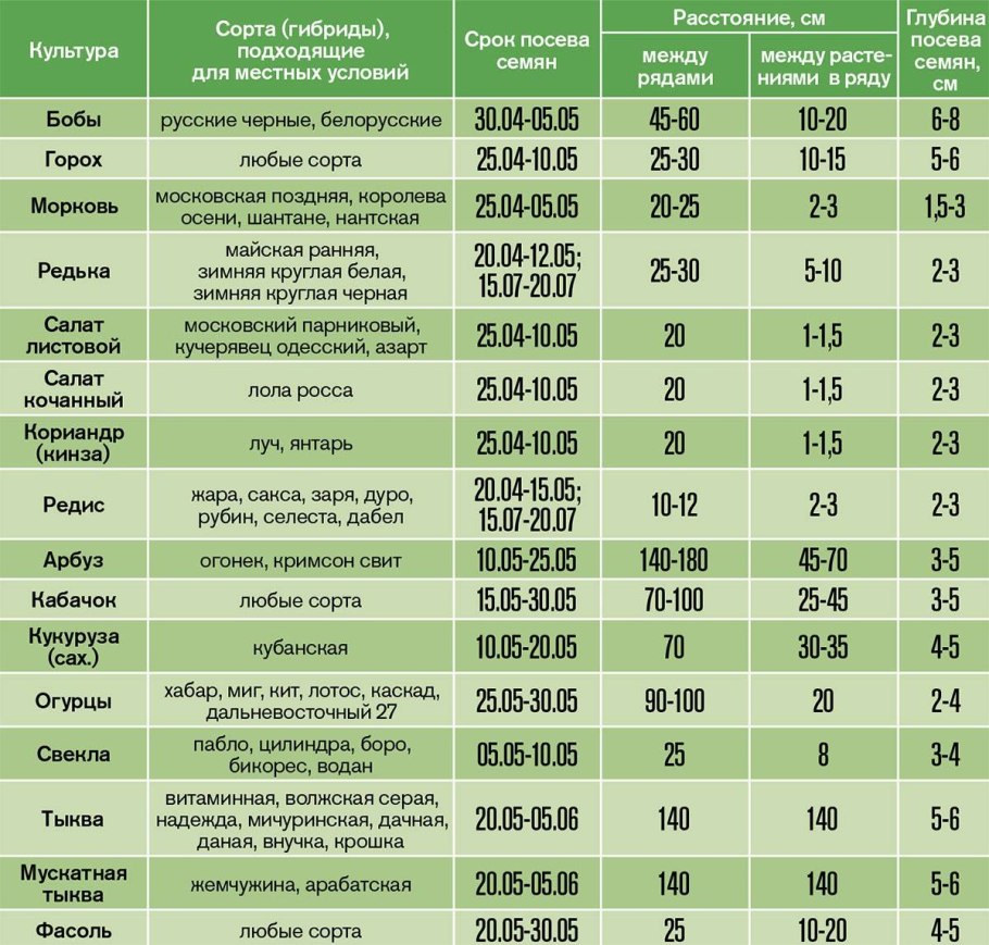 Таблица посадки огородных растений в открытый грунт