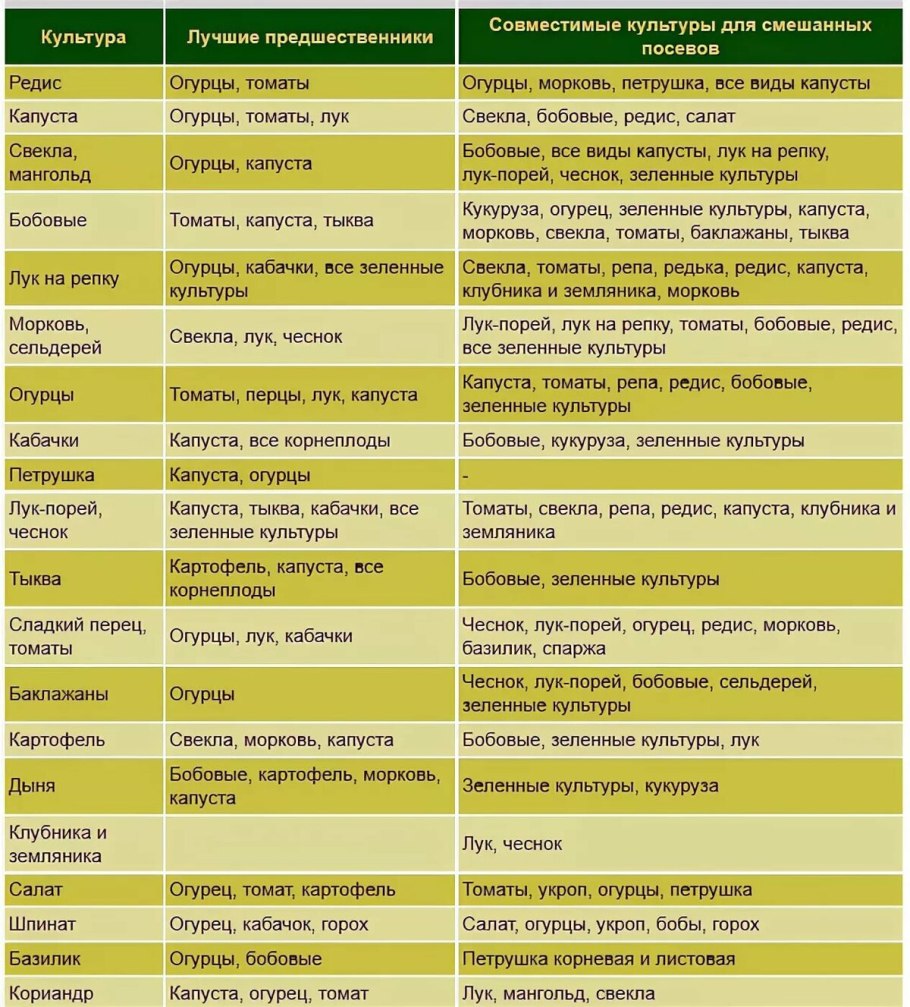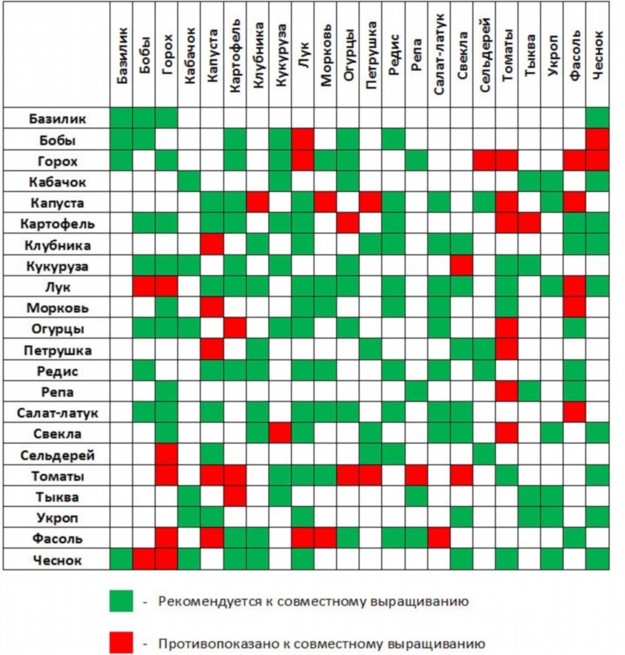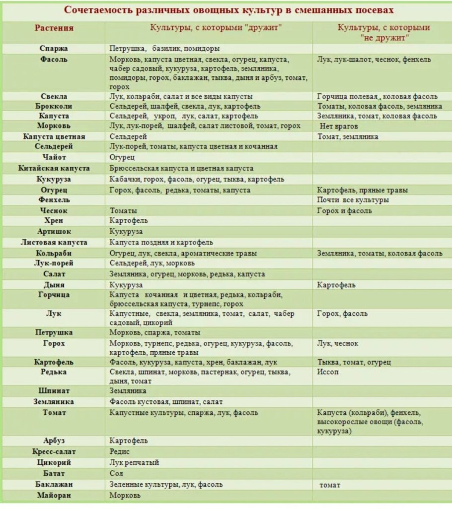 Таблица совместимости растений на огороде соседство овощей
