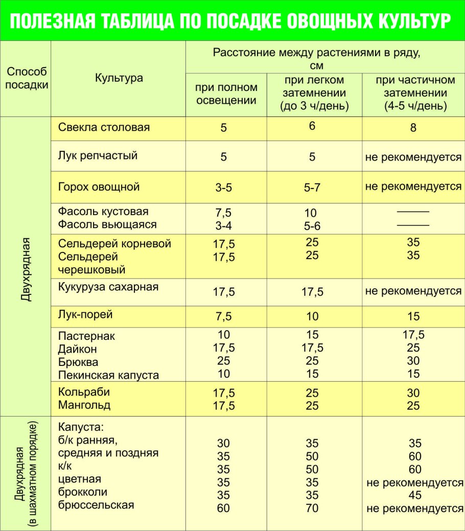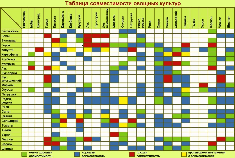 Таблица совмещения посадки овощей
