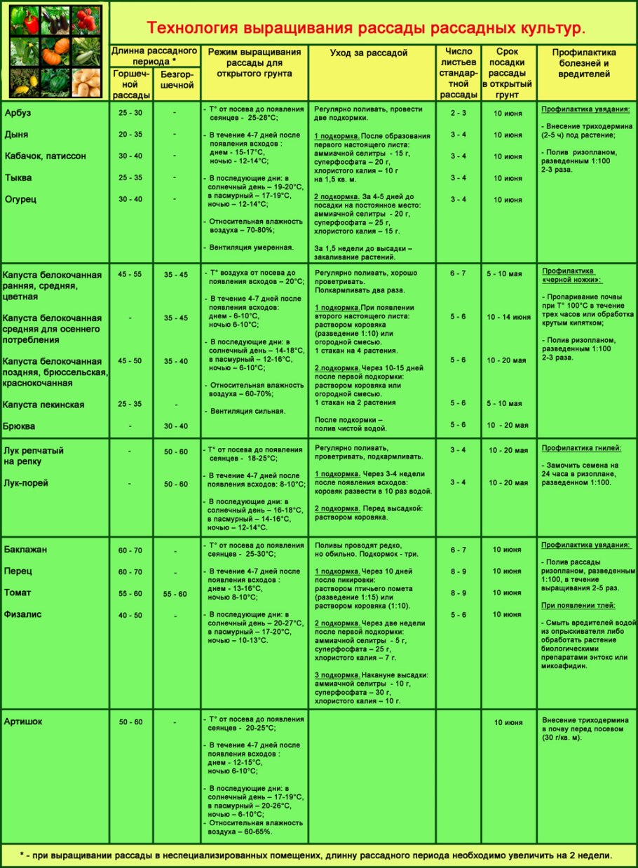 Таблица высадки овощей на рассаду