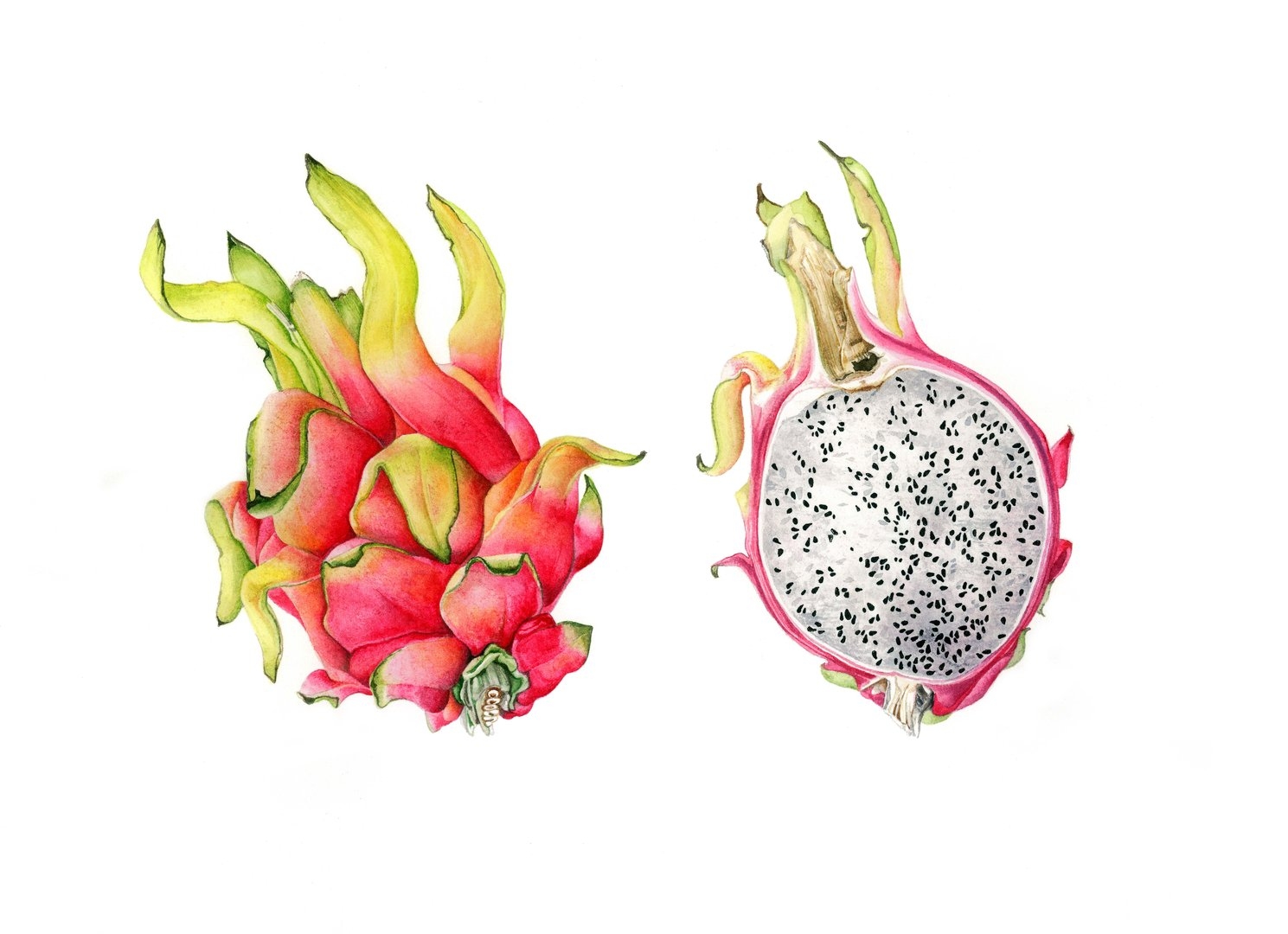 Драгон фрукт акварелью