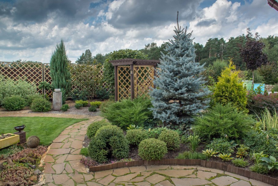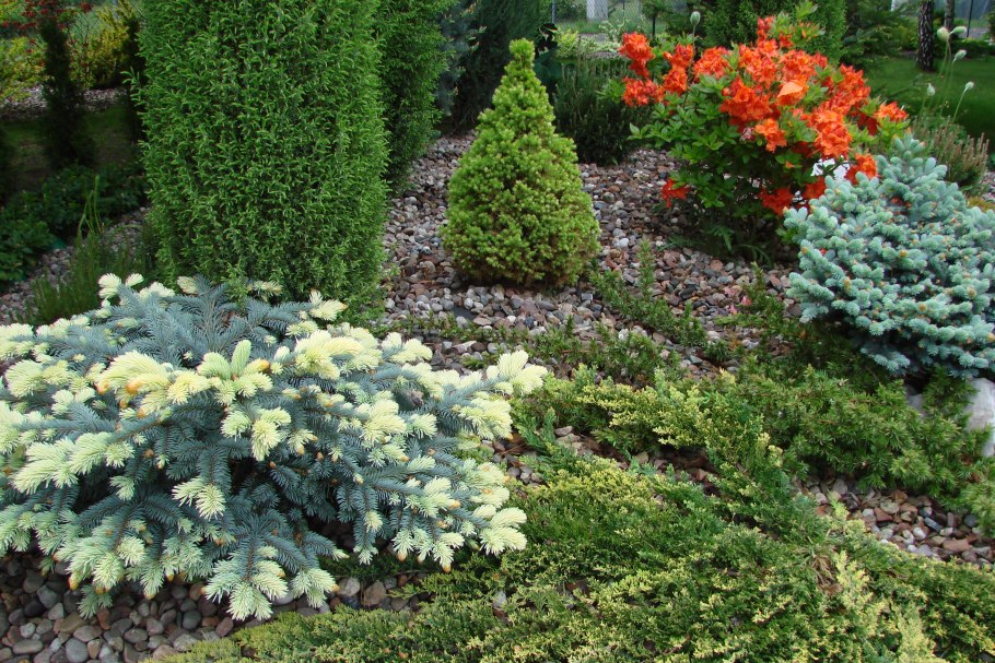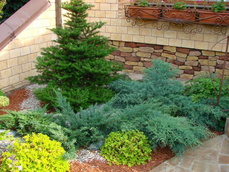 Клумбы хвойников с можжевельниками