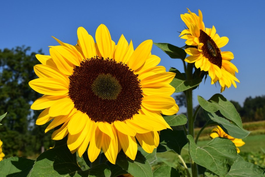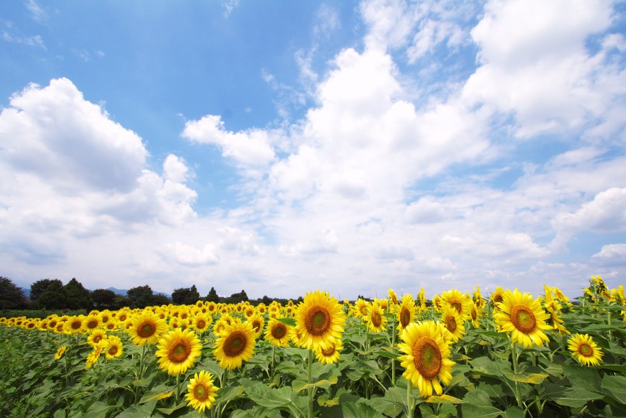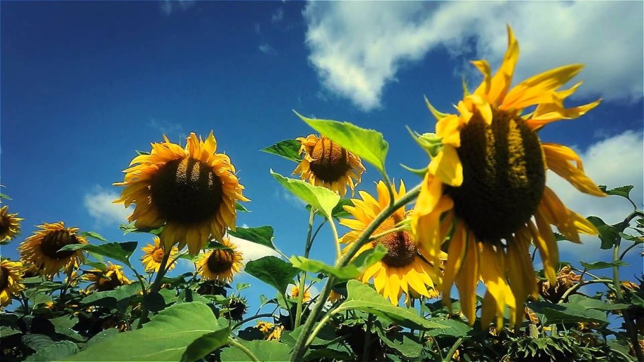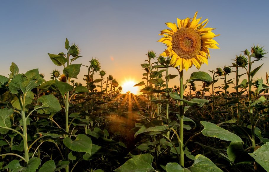 Поле подсолнухов и голубое небо