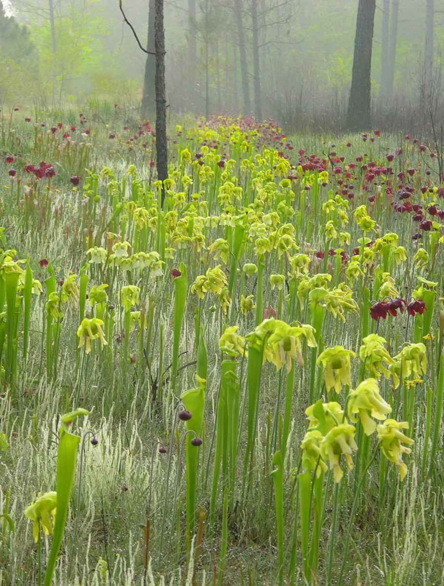 Цветение саррацении на болотах