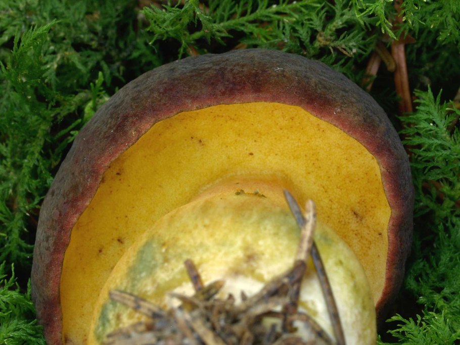 Гриб красный внутри желтый
