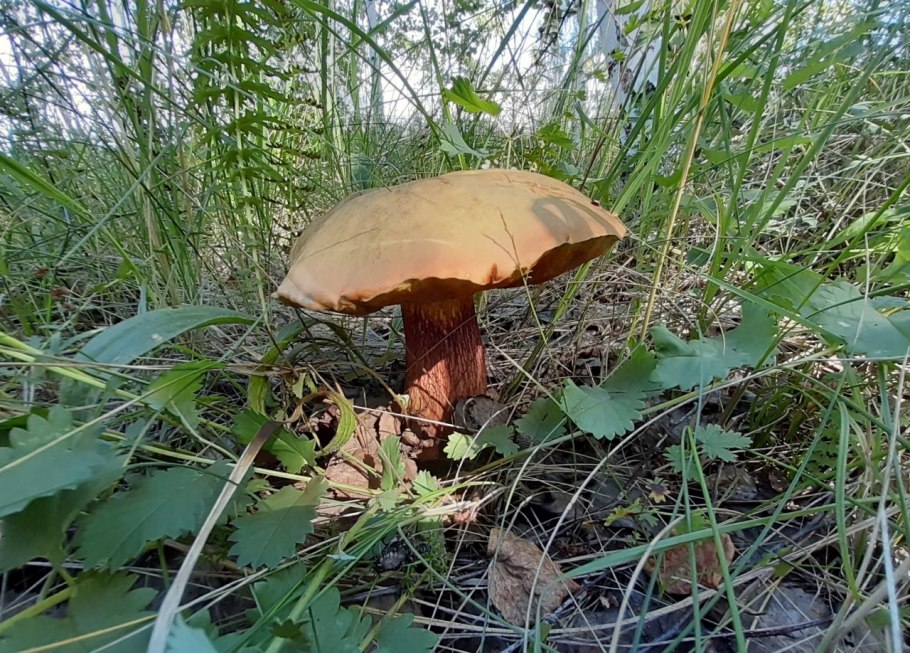 Гриб с бордовой шляпкой