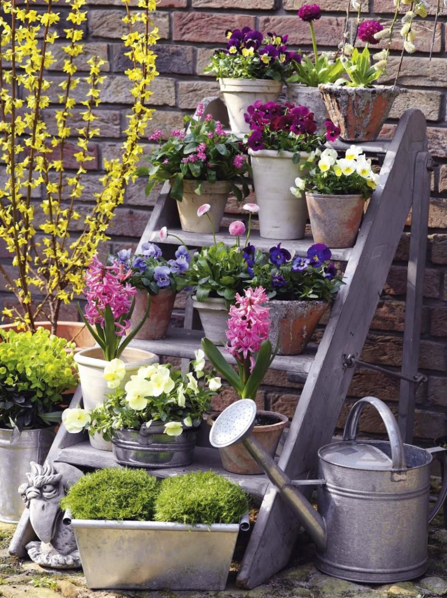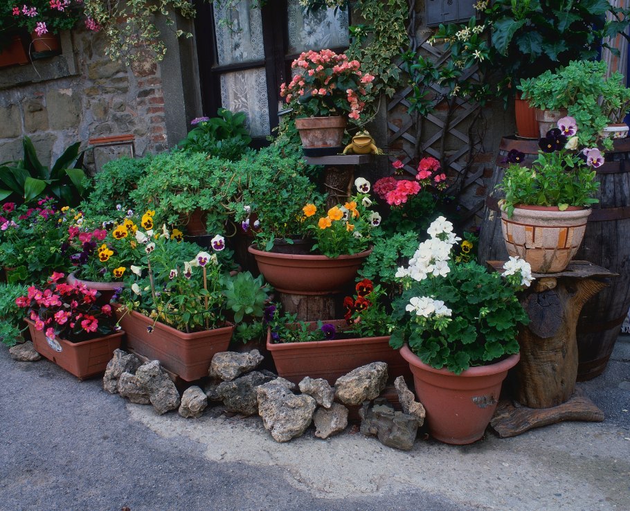 Цветы в горшках на даче
