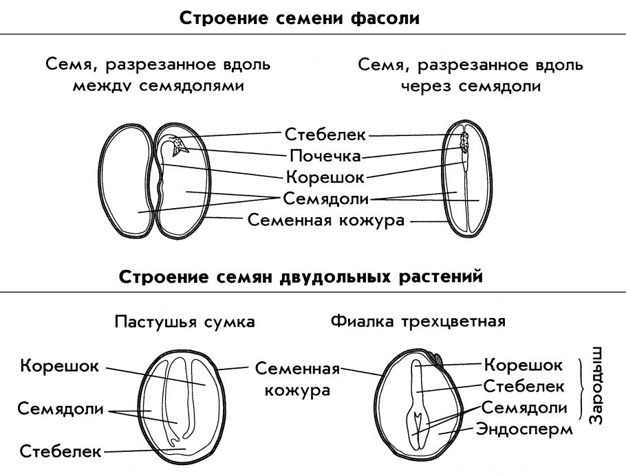 Схема строения семени фасоли