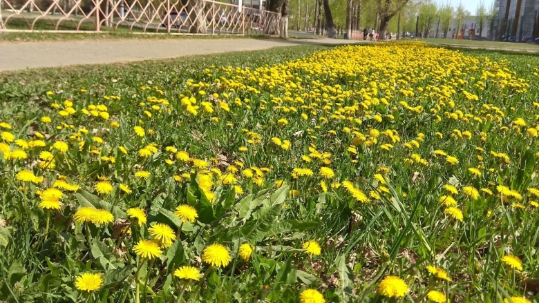 Одуванчиковое поле сорняк