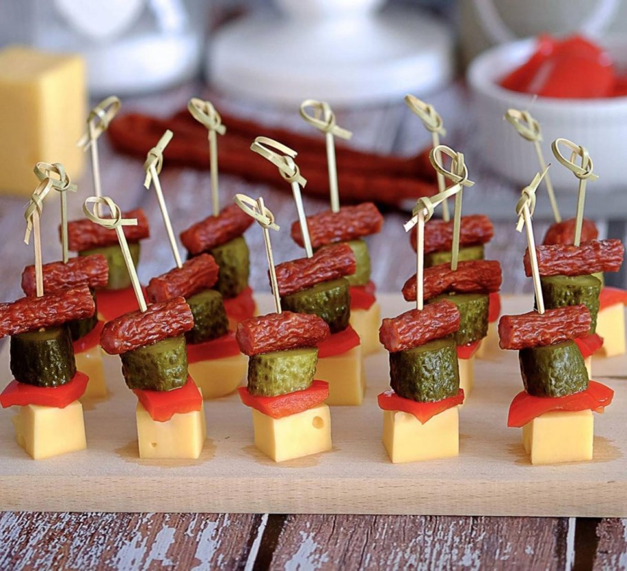 Закуска с колбасой на шпажках