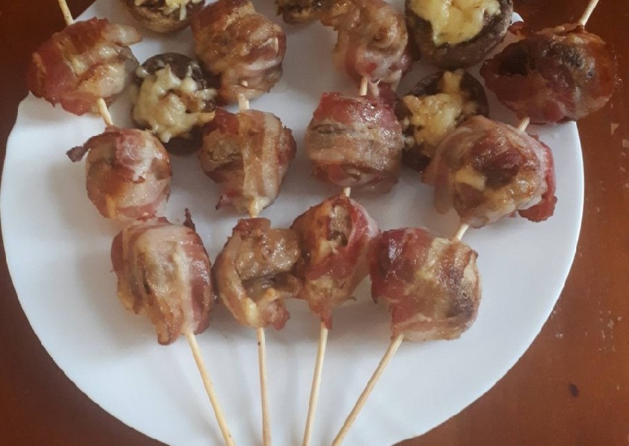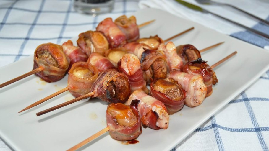 Шашлык шампиньоны с беконом
