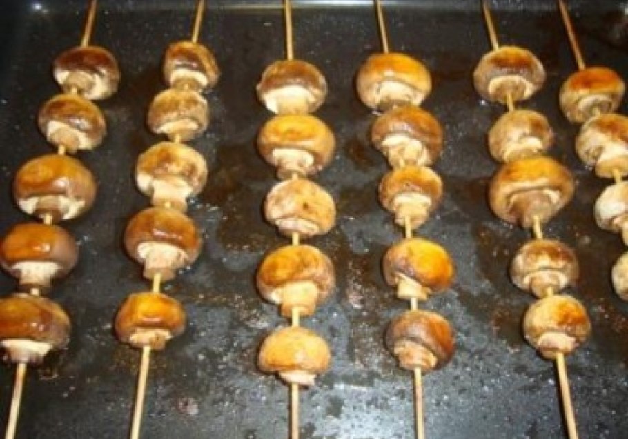 Шампиньоны на шпажках в духовке